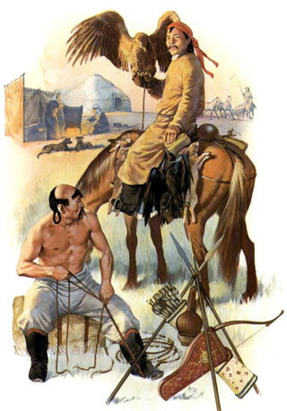 Но в 70-х годах I в. до н.э. время взрыва еще не наступило. Силы хуннского общества консолидировались против внешнего врага (когда в 80 г. до н.э. власть перешла в руки представителей старохуннской партии, война с Китаем возобновилась). С аристократией перестали считаться. Когда младший брат шаньюя, западный лули-князь, заикнулся о мире с Китаем и попытался в 79 г. до н.э. начать переговоры, он поразительно быстро умер. Впрочем, и китайцы договариваться не спешили. Хотя наследник воинственного У-ди, Чжао-ди, был человек бесцветный, китайское правительство понимало, что хуннские претензии несовместимы с безопасностью страны. Задачей старохуннов было вернуть все земли, принадлежавшие первым шаньюям, - Усунь, Согдиану, Ухуань, Ордос, Лобнор и, главное, Иньшань — базу для набегов и привольные охотничьи угодья. Подобная программа, разумеется, должна была встретить самое отчаянное сопротивление. Принимая ее, хунны должны были понимать, что в случае неуспеха они сломают хребет своей державе, и все-таки они рискнули.