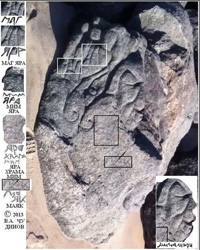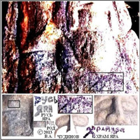 О так называемых «памятниках» письменности, вообще, сказать особо нечего. Нам показывают какие-то замшелые потрескавшиеся камни и заверяют, что этот хаотичный рисунок из разной формы царапин и есть древнее письмо развитой расы. Так и у слона под коленкой можно прочитать. Раса, которая прилетела из космоса, но, тем не менее, как следует буквы нарезать не смогла? Даже «менее развитые» римляне, египтяне и индусы оставили после себя более внятные следы.